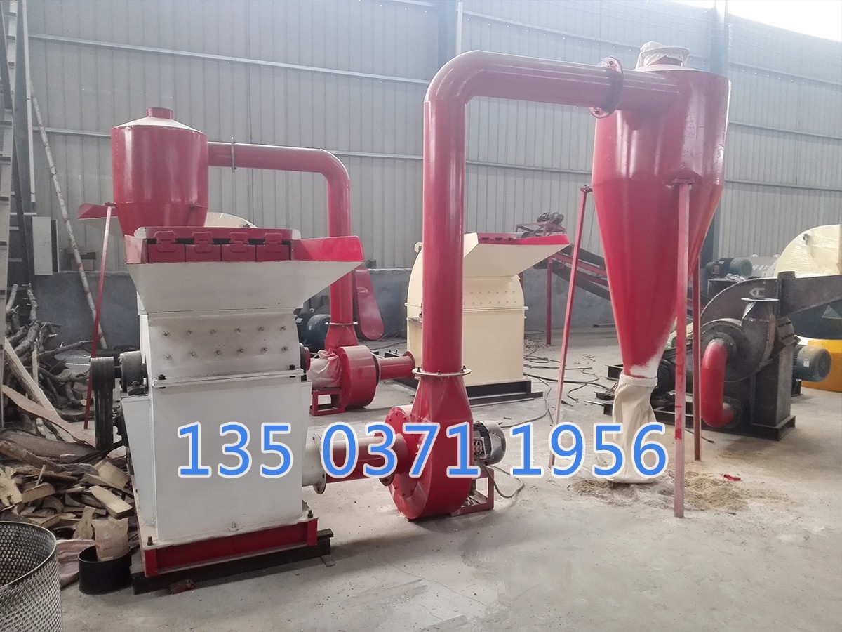 鋸末粉碎主要由削屑裝置、粉碎裝置和風機組成。木材經削屑裝置切削后的木屑粒度小,不需曬干就可送進粉碎裝置進一步粉碎,粉碎后的木屑成品由風機送至集料地點。結構簡單,布置緊湊,售價便宜,工作穩定、耗能少,產量高、木屑成品質量好,加工成本低。還可用于竹、茅草、玉米稈、高粱稈等纖維質稈狀物料的切屑。該木屑機也可作刨花板、鋸末板高密度板的原料生產用。